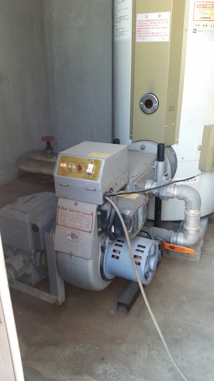 小さな温水機ですが、患者さんの楽しみなお風呂用です。故障が無いように点検を強くお勧めしてきました。
